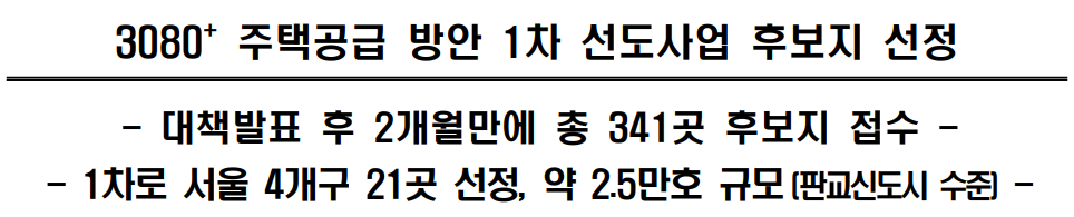 3080+ 주택공급 방안 1차 선도사업 후보지 선정(지역 분석)