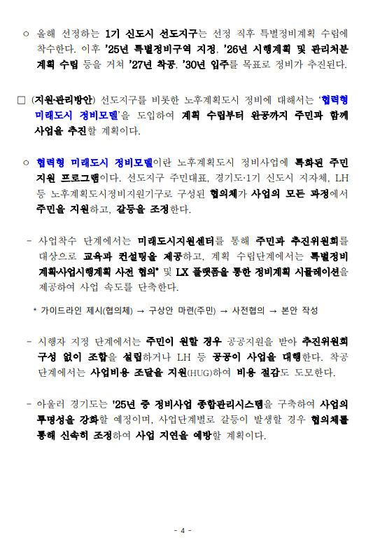 2024. 5. 22. 국토교통부는 부동산 공급 대책의 일환으로 '1기 신도시 선도지구' 선정에 대한 계획을 발표하였습니다.