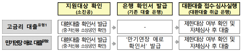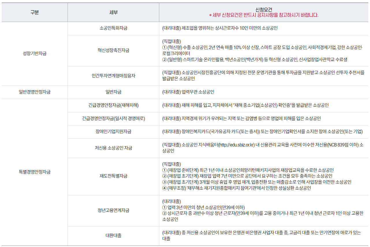 * 세부사항은 자금별 규정하고, 주된 사업의 업종이 지원제외업종에 해당하는 경우 융자대상에서 제외