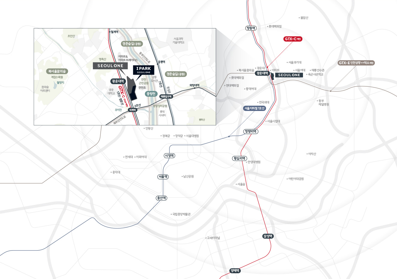 - GTX-C(예정), GTX-E(예정), 지하철 1,6,7호선까지 강남, 수도권까지 빠르게 연결하는 퀀터플 역세권
