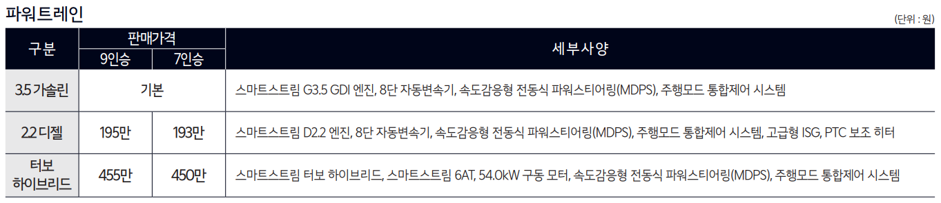 ■ 3.5 가솔린 9인승 그래비티(기본 : 컨비니언스, 스타일, 12.3인치 클러스터)