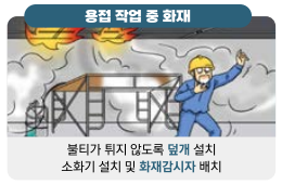 | 화재 | 용접 시 불티가 튀지 않도록 덮개 설치 | |