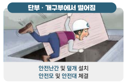 | 떨어짐 | 떨어질 위험이 있는 장소에 안전난간 및 덮개 설치 | |