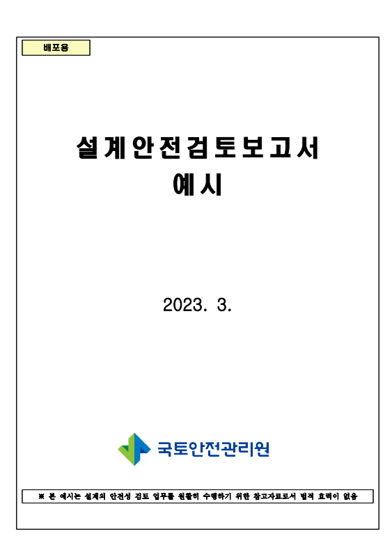 국토안전관리원에서는 설계안전검토보고서 작성에 대한 매뉴얼을 제공하고 있으며, 첨부파일로 공유하오니 관심이 있으신 분들은 업무에 활용하시기 바랍니다.